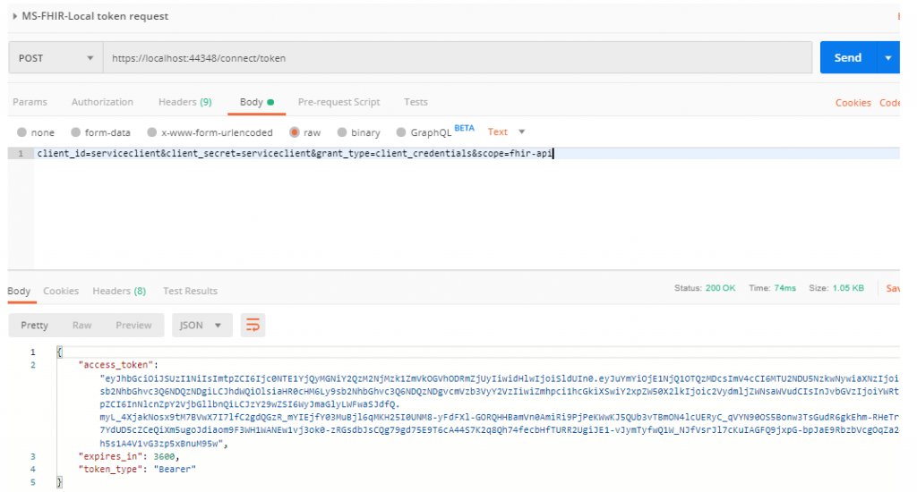 BODY: client_id=serviceclient&client_secret=serviceclient&grant_type=client_credentials&scope=fhir-api
