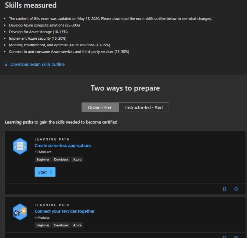 For a limited time, Microsoft Learn provides a free, interactive way of learning by combining short step-by-step tutorials, browser-based interactive coding and scripting environments, and task-based achievements to help you advance your technical skills while earning achievements.