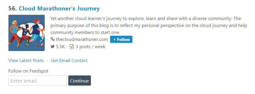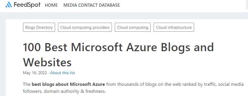 I was informed that the FeedSpot editorial team extensively searches on Google and social media websites to find the best Microsoft Azure blogs and ranks them based on several factors such as: