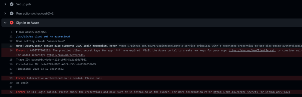 In this post, I will be addressing a common an error that could be seen in your GitHub actions, once in a while, called “Error: Az CLI Login failed. Please check the credentials and make sure az is installed on the runner”.