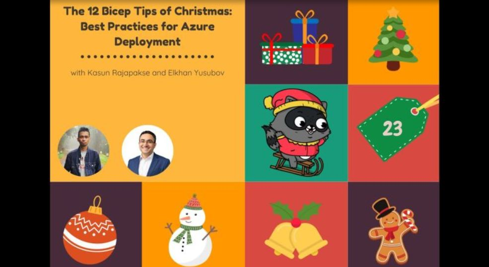 In this session, we invite you to take a trip to Azure with ‘The 12 Bicep Tips of Christmas: Best Practices for Azure Deployment.’ We encourage you to open the present of knowledge as we show you the ropes and help you use Azure Bicep to its best potential. By joining us you will spread good cheer for a prosperous and trouble-free Azure experience this holiday season in honor of efficient cloud management.