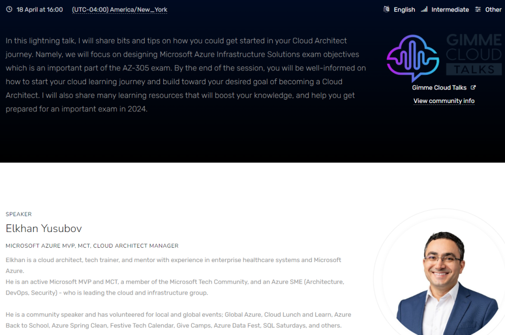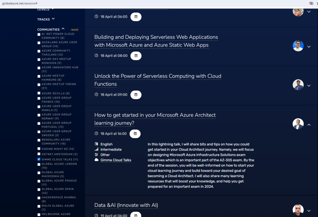 Generally speaking, this event is a huge success as Microsoft community members all over the world are celebrating this occasion by submitting their session for acceptance. This year, I submitted my session with the Microsoft community in the USA, called GIMME CLOUD TALKS.