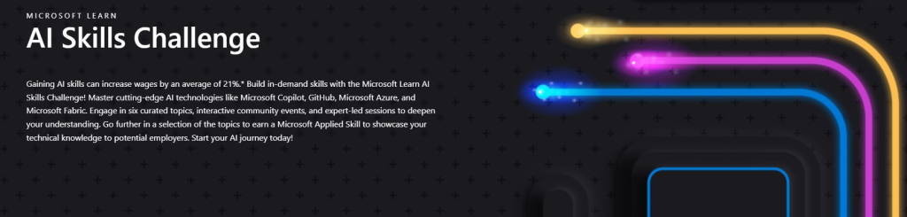 Did you know that the Microsoft Learn AI 🚀 Skills Challenge starts on September 24th. You will have a couple of weeks till November 1st to complete this challenge. You will learn the advanced AI technology with the following six curated topics designed to elevate your skills.