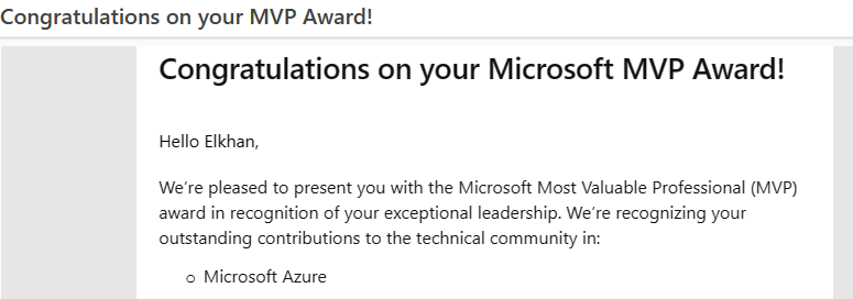-Microsoft MVP award notification email
